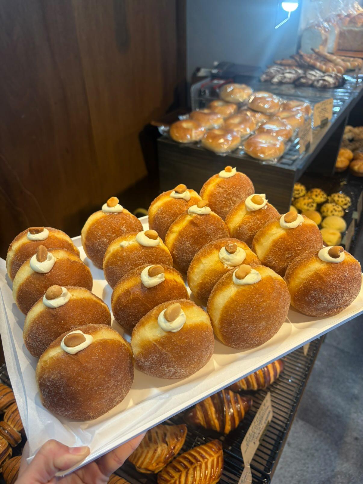 米油で揚げて軽い味わいに、周りのお砂糖はきび砂糖、中のクリームは自家製のカスタードクリームとホイップクリームを混ぜ合わせ、何度も試作を繰り返し最高に美味しい味わいになっております。お客様からは今までで食べた生ドーナツの中で一番おいしい!とお声をいただいたり、毎度ご予約をいただいている人気ぶり。