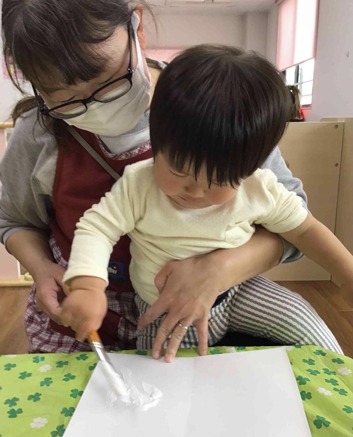 クラスは年齢別なので、室内でも子どもたちは思いっきり体を動かしたり、先生とお歌遊びをして楽しんでいます。